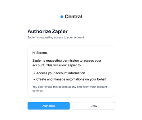 A quick guide on how to set up Zapier for Central AI Reception